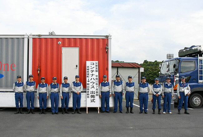 平成30年7月には、西日本豪雨で甚大な被害を受けた岡山県倉敷市真備町地区の避難所にコンテナハウス一式の貸し出を行いました。今後も、コンテナハウスの備蓄と活用を通じて災害時の相互支援体制づくりを全国的に展開し、防災力の強化につなげていきます。