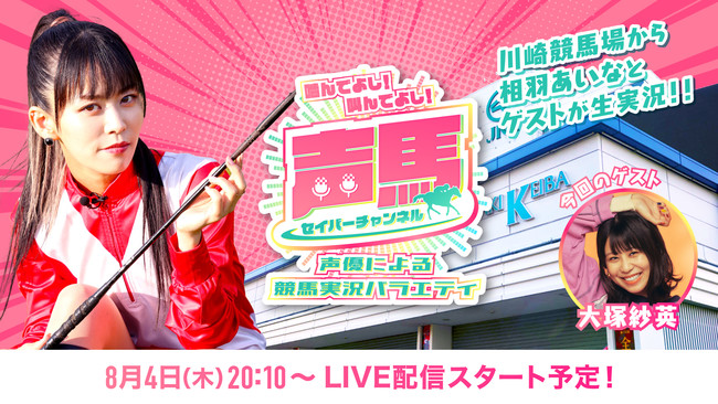 ‘声馬チャンネル実行委員会’は声優による川崎競馬実況バラエティ番組『声馬チャンネル(セイバーチャンネル)@川崎競馬場』の第9回ライブ配信のゲストに大塚紗英さんをお迎えすることが決定したことをお知らせ致します。