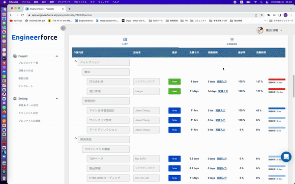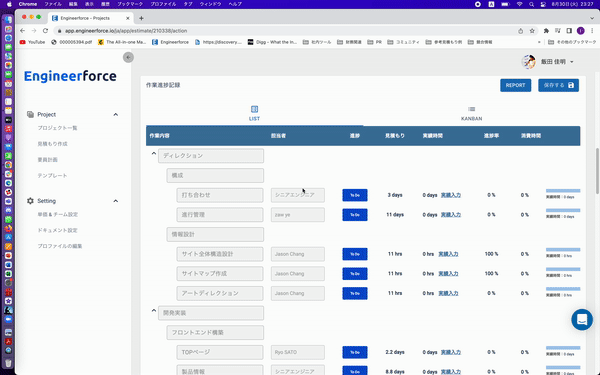 IT業界において、"見積もり作成"は業務の中で重要な工程でありながら、それらを改善するプロセスが上手く回っていないようにも感じておりました。そのため新機能として、日々の収益性やタスクの進捗を確認することができる仕組みや見積もりからプロジェクトマネージメントまで対応可能な予実管理機能をリリース致しました。