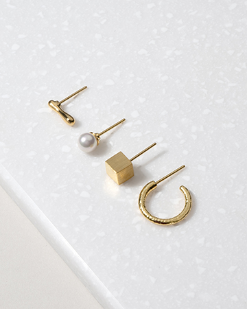 「LIGHT SERIES」は、その名の通り「光 / 軽さ」をテーマにしています。シンプルなデザインで上質な輝きをもつピアスは、日常的なスタイルのアクセントになります。