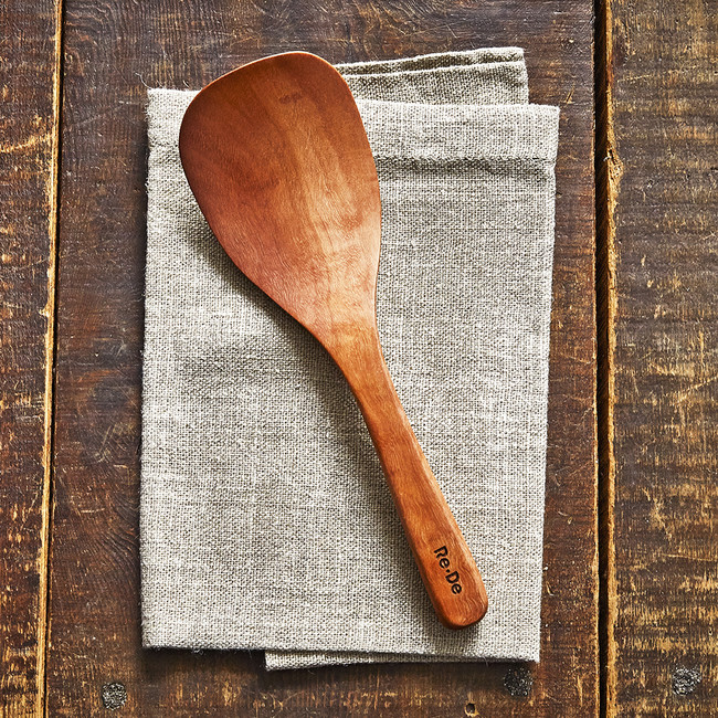 また、イベント開催時にRe・De Potをご購入いただいたお客様には、「Re・De Pot専用 特別しゃもじ」のプレゼントを実施しています。天然木を使用し、ひとつひとつ手作業で研磨仕上げしているため、木の素材や特性によって形や色・木目が異なる、味わい深いしゃもじです。美味しいお米は道具で決まる。手になじむ優しい質感と木目の風合いがキッチンを華やかにするだけでなく、Re・De Potが得意な炊飯をおいしく彩る、とっておきの必需品です。※なくなり次第終了となります。