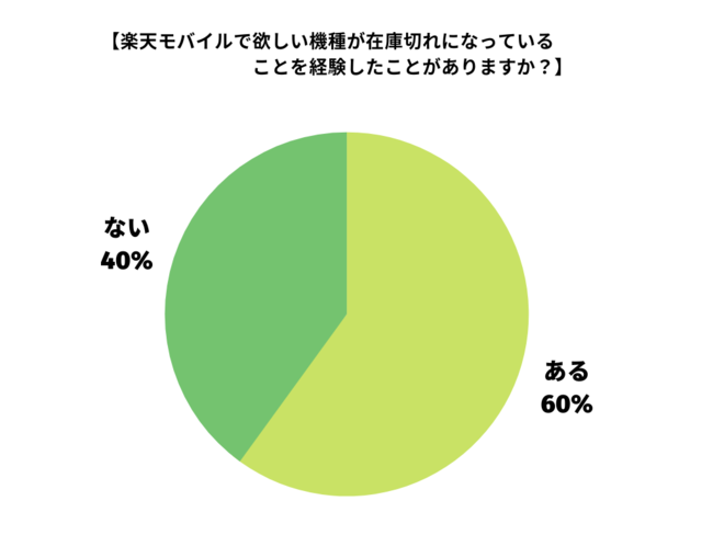楽天モバイルオンラインショップで、欲しい機種が在庫切れになっていた経験をしたことがある人が、約60%であることがわかりました。