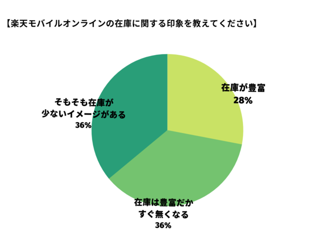 「楽天モバイルオンラインの在庫に関する印象を教えてください」と、楽天モバイルオンラインショップを使ったことのある10代〜60代の男女300人にアンケートしたところ、下記のような結果となりました。
