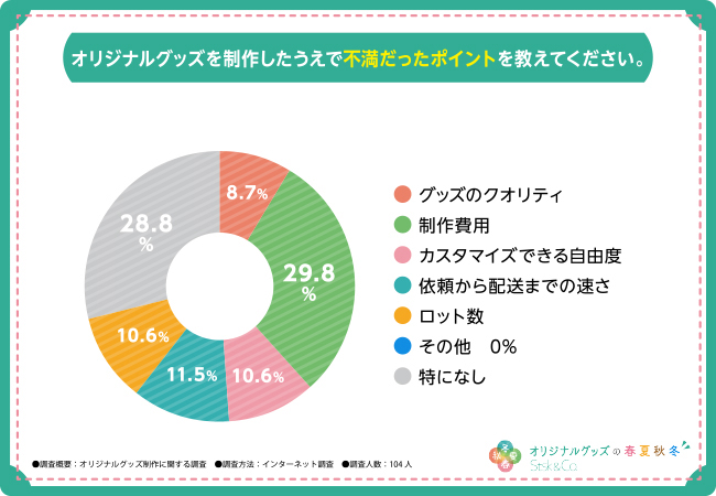次に、「オリジナルグッズを制作したうえで不満だったポイントを教えてください。」と質問したところ、