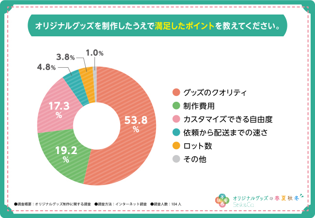 オリジナルグッズ制作で満足したポイント第1位は『グッズのクオリティ』