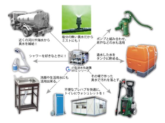 ※「小型海水淡水化装置」と「循環式手洗いユニット」は併用使用可能な製品です。