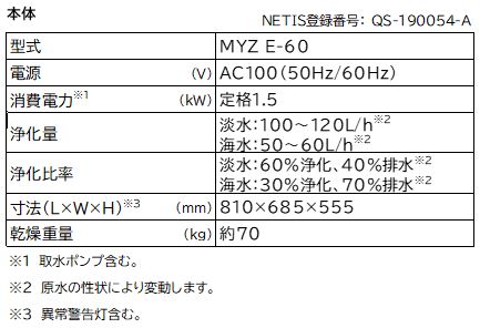 ■「小型海水淡水化装置」製品仕様