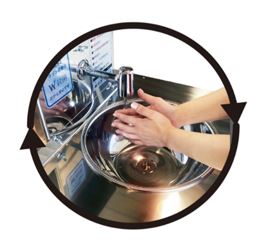 ・ワンプッシュ蛇口で衛生的、最低限の接触で手洗いが可能安全弁を