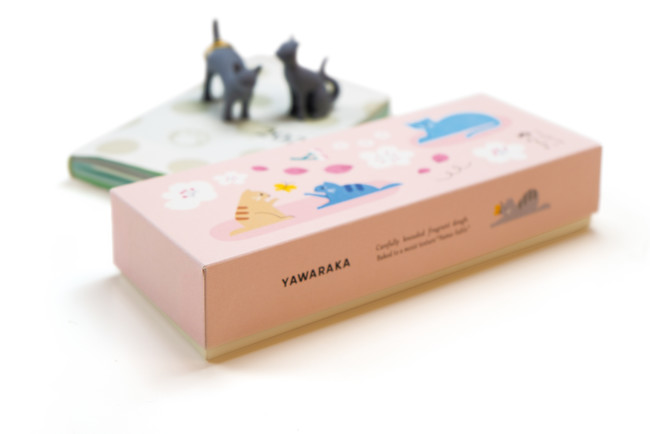 奥村氏:春限定の「ねこの春」は無邪気に遊ぶ子猫達と温かく見守る親猫を描いています。やわらかのバターの優しい味が作り出す温かさと我が子を見守る愛の温かさが重なり合い、春の季節が幸せな時間になるようなデザイン。箱の中にはお菓子は埼玉銘菓やわらかゴールドプレーンが入っています。春は出会いと別れの季節です。やわらかを大切な方への心温まる贈り物にいかがでしょうか。