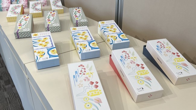 奥村氏:色彩豊かな夏の花畑に人々が元気をもらえる様に、やわらかを口にする方にも笑顔で素敵な気持ちになってもらいたいという想いです。箱の素材や画風には、お菓子からも感じとれる「優しさ」を取り入れ、心地良く親しみやすいデザインに仕上げています。なかなか会うことの出来ないご家族やお友達、贈る相手の方の喜ぶ姿が見たい、そんなお気持ちにお応えできる存在になれたら嬉しいです。