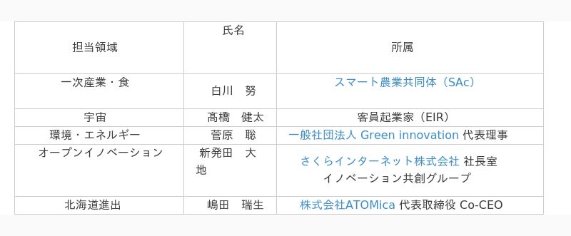 北海道からグローバルを目指すスタートアップを生み育てるエコシステムの実現を目指す STARTUP HOKKAIDO実行委員会(所在地:北海道札幌市、実行委員長 土田美那、以下「STARTUP HOKKAIDO」)は、注力分野に掲げる「一次産業・食」、「宇宙」、「環境・エネルギー」領域でのスタートアップの創出および集積、道内におけるスタートアップと自治体、事業会社のオープンイノベーションの推進、北海道に進出を検討する国内外のスタートアップの発掘、サポートを担当する専門マネージャーを配置したことをお知らせします。