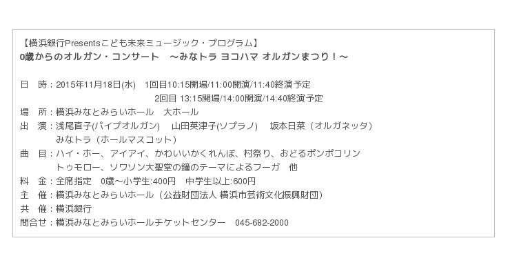 0歳からのオルガン・コンサート 【みなトラ ヨコハマ オルガンまつり!】