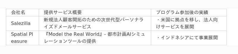 現段階で、第1期および第2期に参加した8社中、6社が資金調達を実施しました。このうち4社は国内の投資家から、2社は海外の投資家からの調達で、国内外それぞれで事業展開に挑戦しています。