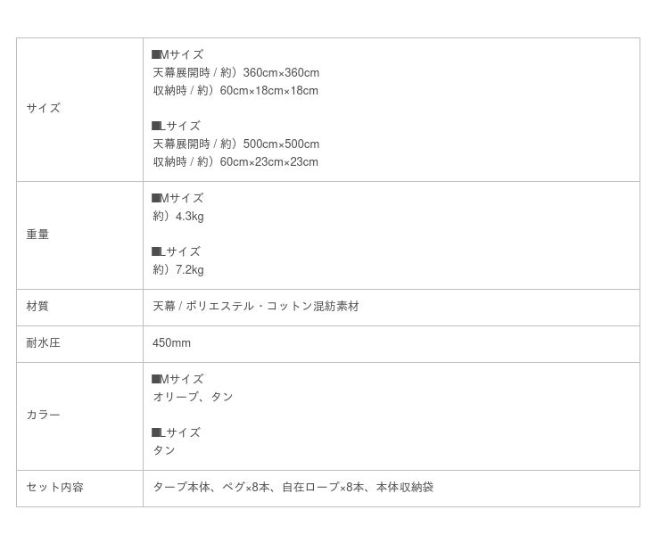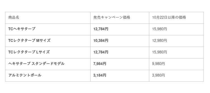 ※新商品のタープ(TCヘキサタープ、TCレクタタープ Mサイズ、TCレクタタープ Lサイズ、ヘキサタープ スタンダードモデル)が対象です