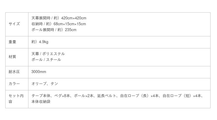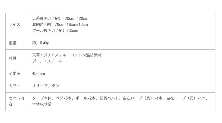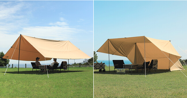 ソロからファミリーシーンまで、自由に選べる多種多用な張り方が可能