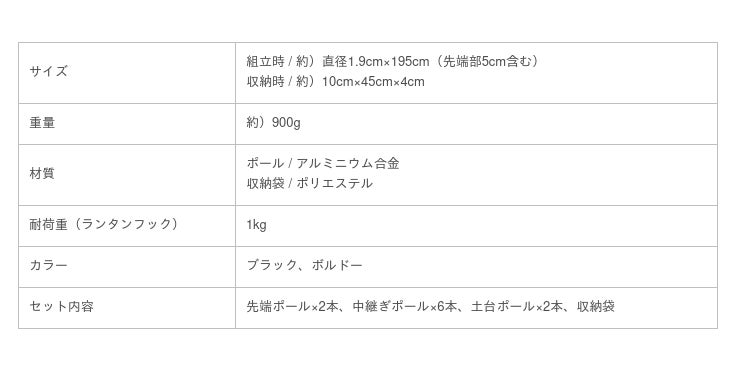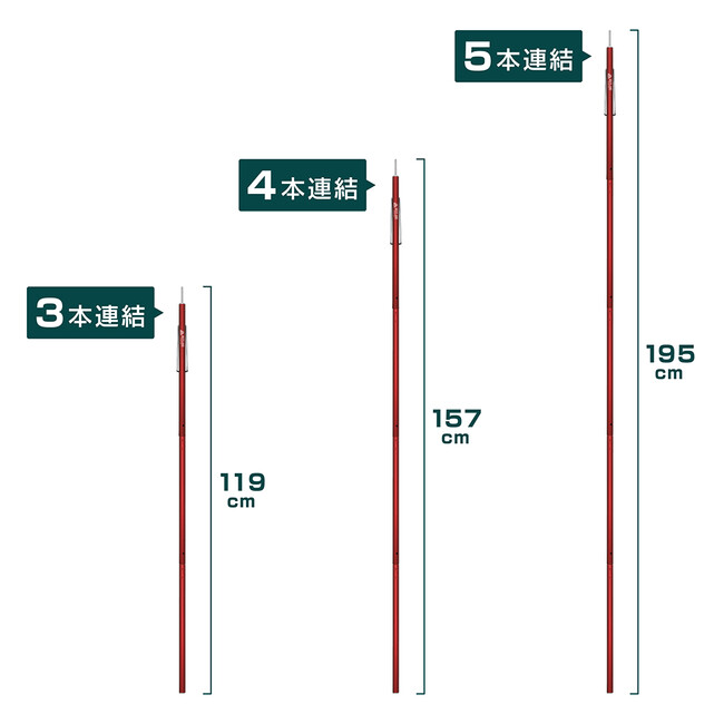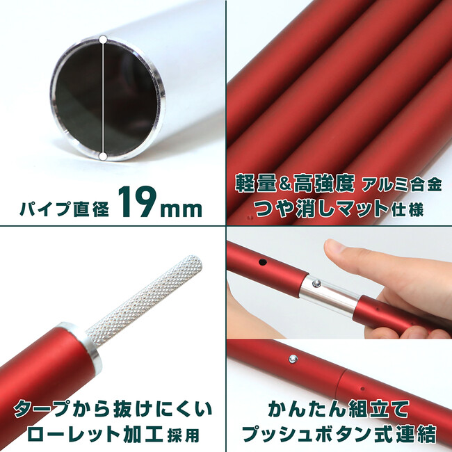 テントのキャノピーポールやタープのサブポールで使用可能なアルミテントポール