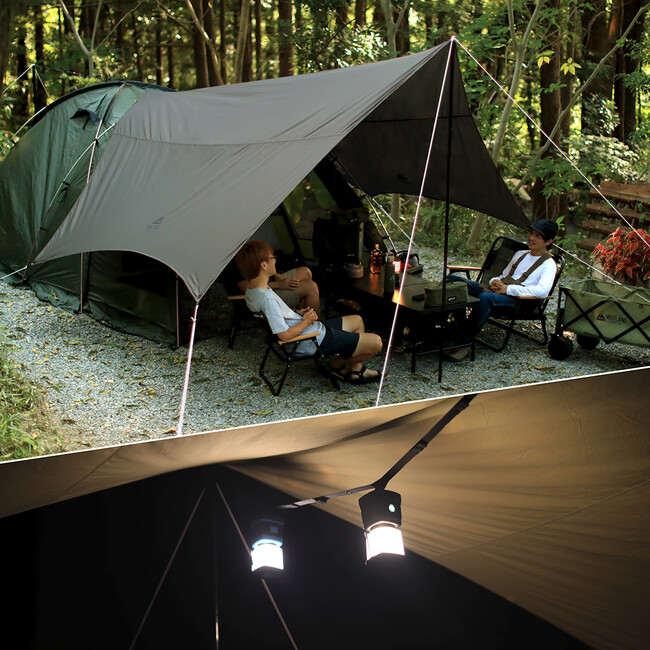 テントをタープの中に配置したり、ランタンフックとして活用可能