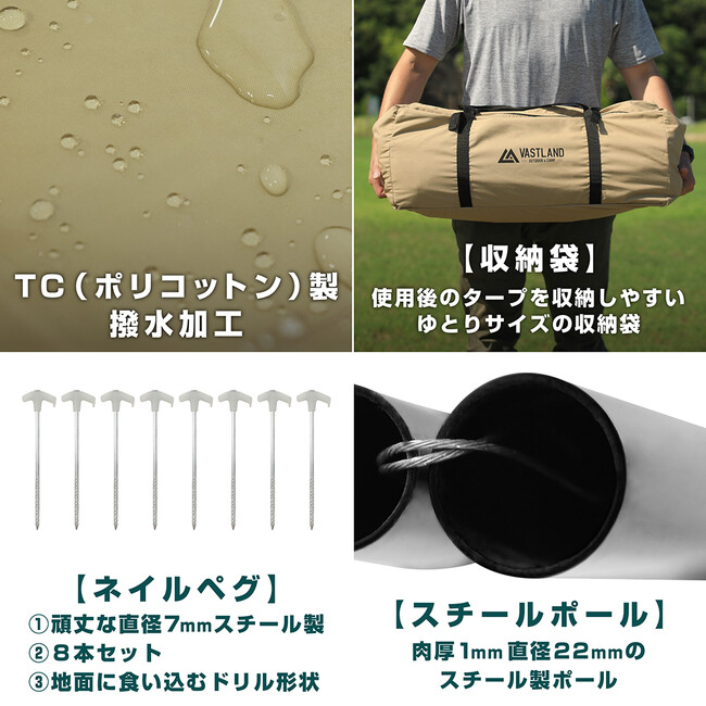 キャンプ・アウトドア用品ブランド「VASTLAND」、ブランド初となるTC素材を使用した「TCヘキサタープ」、「TCレクタタープ」を含む5商品を2022年10月8日(土)に同時発売