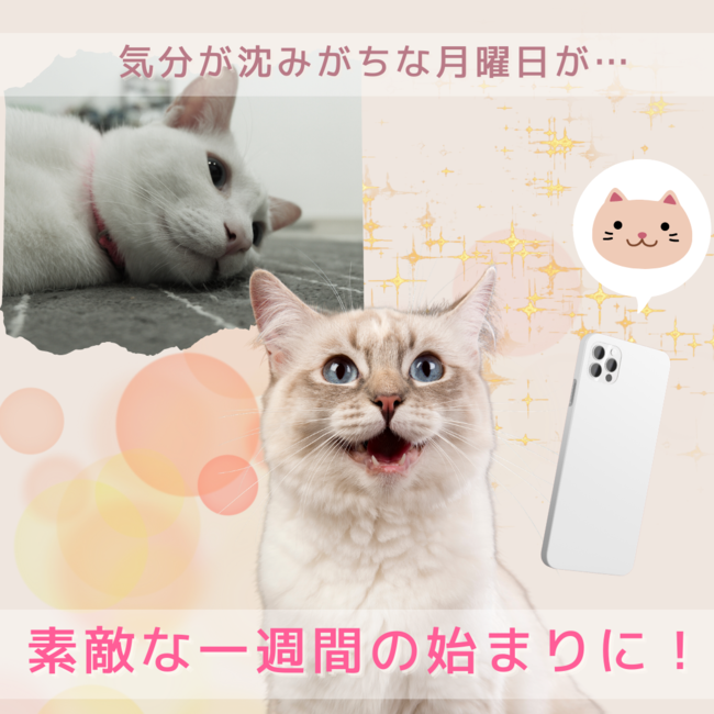 ”毎週月曜日の朝”です。足取りの重くなりがちな週の始まりに、可愛いニャンズからエールのプレゼント♪皆さまが明るく楽しい気分で過ごせるきっかけになれましたら幸いです。