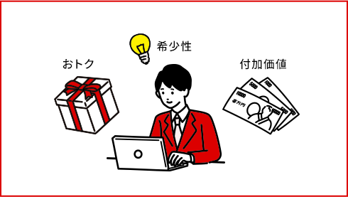 そこでバリュー帝国ではシンプルで、簡単、早く還元される、ユーザーに寄り添ったお申込みサイトをご紹介していきます。また、サイト運営会社側にも「特典」の企画や提案を行い、特典の「見栄え」だけでなく、特典の付与条件、付加価値、希少性などから総合的に満足度の高い申込みサイトを作っていきます。
