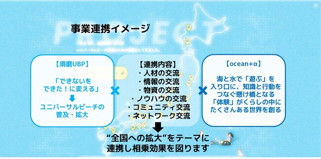 障がいがある人もない人もみんなが一緒に楽しめるビーチづくりを目指すNPO法人須磨ユニバーサルビーチプロジェクトは、株式会社オーシャナが運営するWEBメディア『ocean+α(オーシャナ)』とコラボし、「日本全国でのマリンアクティビティの普及・拡大」の目的において事業連携していきます。