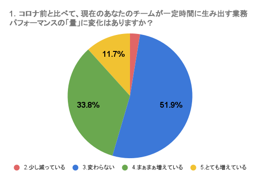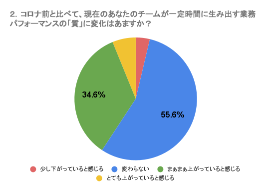 その結果、「在宅勤務であってもそれ以前と同等もしくはそれ以上の生産性を維持できている」という回答を得られました。