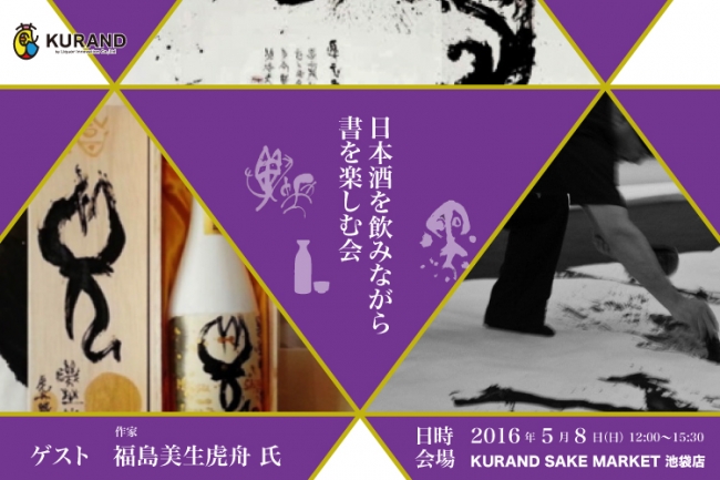 リカー・イノベーション株式会社(以下、「リカー・イノベーション」)は、2016年5月8日(日)に、古代文字を書道に活かした作品づくりを手掛ける作家・福島美生虎舟氏をゲストに招き、日本酒と「書」を楽しむイベント「日本酒を飲みながら書を楽しむ会 〜漢字のルーツを知り、古代文字アートを楽しんでみませんか〜」(以下、「本イベント」)をリカー・イノベーションの運営する日本酒のEC事業・店舗事業「KURAND」の直営店「KURAND SAKE MARKET」の池袋店にて開催します。本イベントは、KURANDと福島美生虎舟氏による初のコラボレーションイベントとなります。