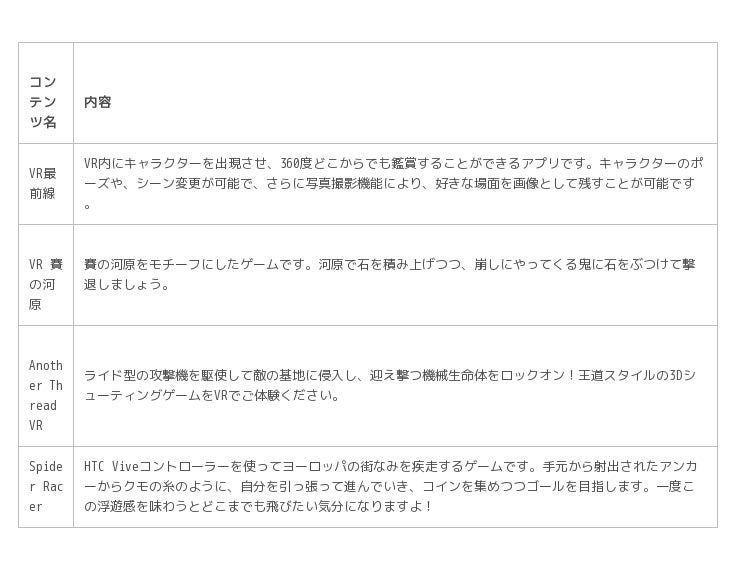 ○「Unity VRコンテンツダウンロードカード Oculus Rift Edition」収録コンテンツ
