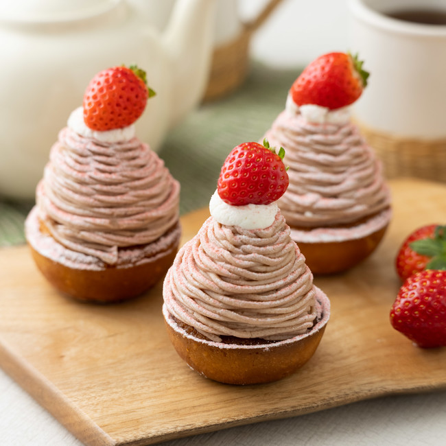 (※2)「いちごのモンブランタルト」はアーモンドたっぷりの自家製タルトに、ミガキイチゴジャム、生クリーム、いちごモンブランクリームを絞って生いちごをてっぺんにのせたスイーツ。何層にも重なるいちごの甘酸っぱさが味わえる、熱烈なファンの方も多いスイーツです。