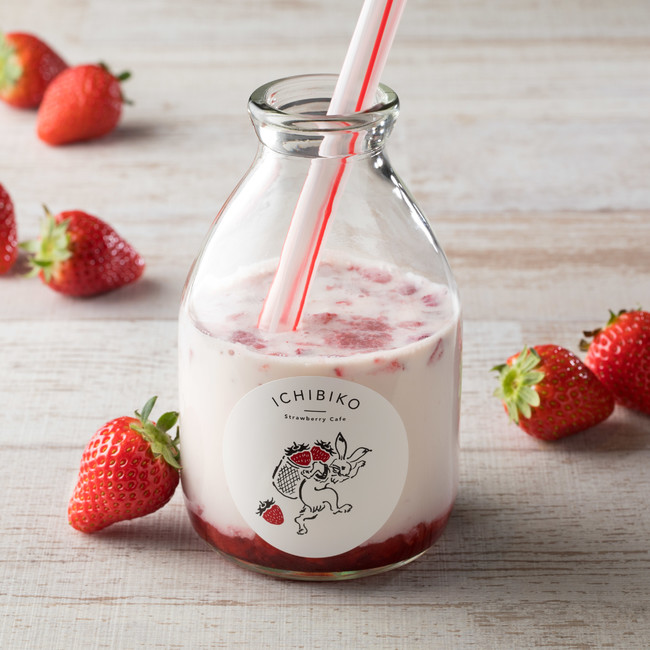 (※1)「いちびこミルク」は、角切りいちごを砂糖に漬け込んだ特製いちごミルクのもとに、冷凍いちごと生乳を加えたいちびこカフェ人気No.1メニュー。提供時には2層に分かれており、よくかき混ぜることでいちごとミルクの甘酸っぱさと香りのハーモニーが味わるドリンクです。