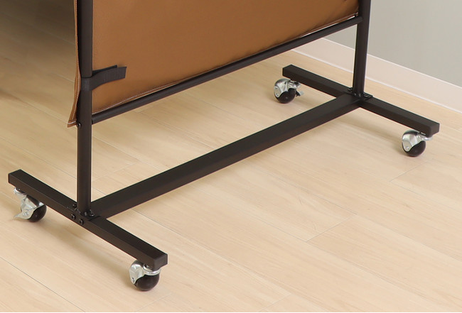 自立式の壁面収納としてご利用いただけるので、壁に穴を開けられない場合など大変便利です。キャスターがあるのでさっと移動ができ、店舗やイベントなど会場のブース設営にも最適です。