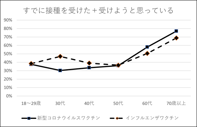 ■「すでに接種を受けた」新型コロナ・インフルともに41%