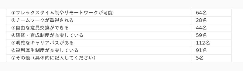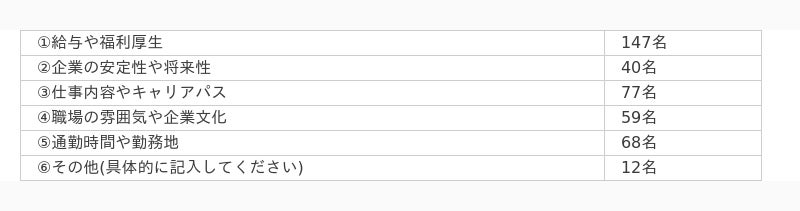 アンケート3:転職先を選ぶ際に重視する要素は何ですか?