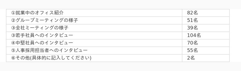 アンケート8:どのような内容であれば企業紹介動画から職場の雰囲気を確認することができると思いますか?