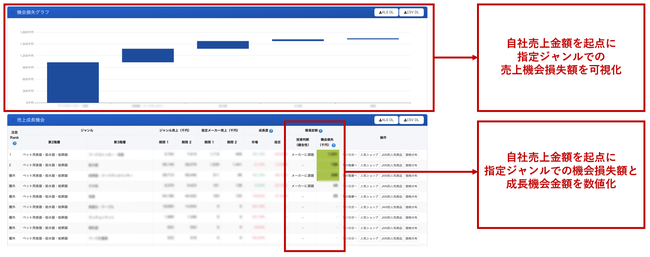 自社と市場の成長比較によるジャンルごとの機会損失額を瞬時に特定!〜 売上成長機会の把握を容易に 〜