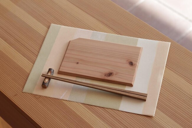 ウッドラボいけだでは、池田町産スギでマイ箸・箸置き・とり皿づくり体験ができます。自分でつくった食器を持って、町内のお店を巡りましょう!