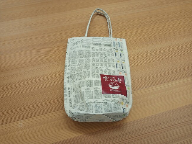 総合案内所では、マイ新聞紙バックづくり体験ができます。