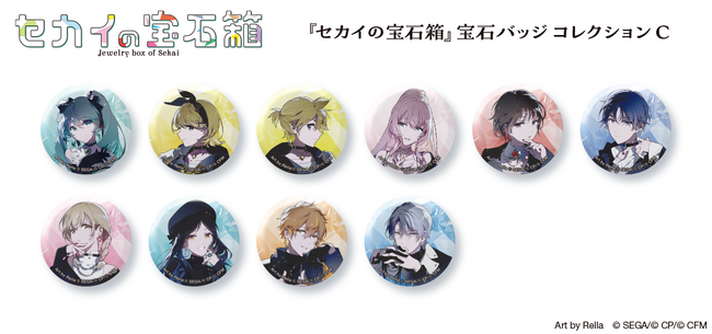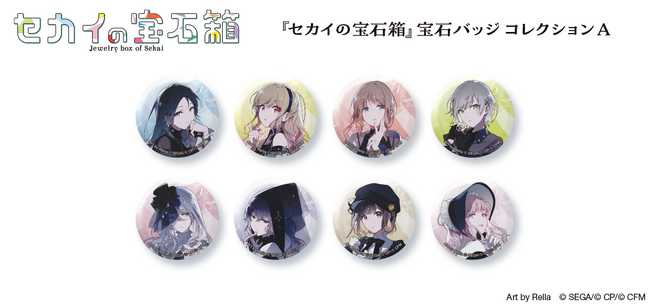また、ボードゲーム『セカイの宝石箱』の発売と同時にゲームプレイに利用できる宝石バッジシリーズも合わせて発売いたします。表面にホログラムPP加工を施し、『セカイの宝石箱』の世界観を演出したスペシャルなグッズです。
