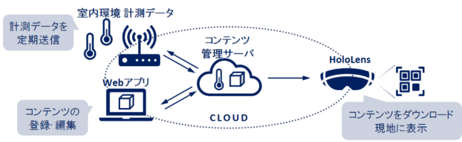※ 3Dコンテンツ:本技術によりAR表示する、温度・湿度センサデータや事前シミュレーション結果の3Dモデルを総称してこのように呼称