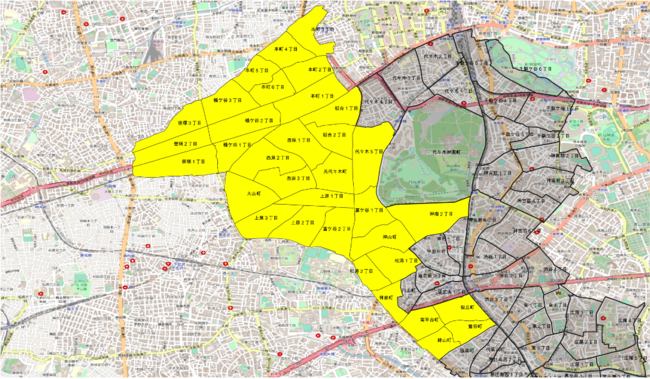 o本町1〜6丁目、幡ヶ谷1〜3丁目、笹塚1〜3丁目、西原1〜3丁目、初台1〜2丁目、元代々木町、代々木5丁目、大山町、上原1〜3丁目、富ヶ谷1〜2丁目、神山町、神南2丁目、松濤1〜2丁目、神泉町、南平台町、桜丘町、鉢山町、鶯谷町