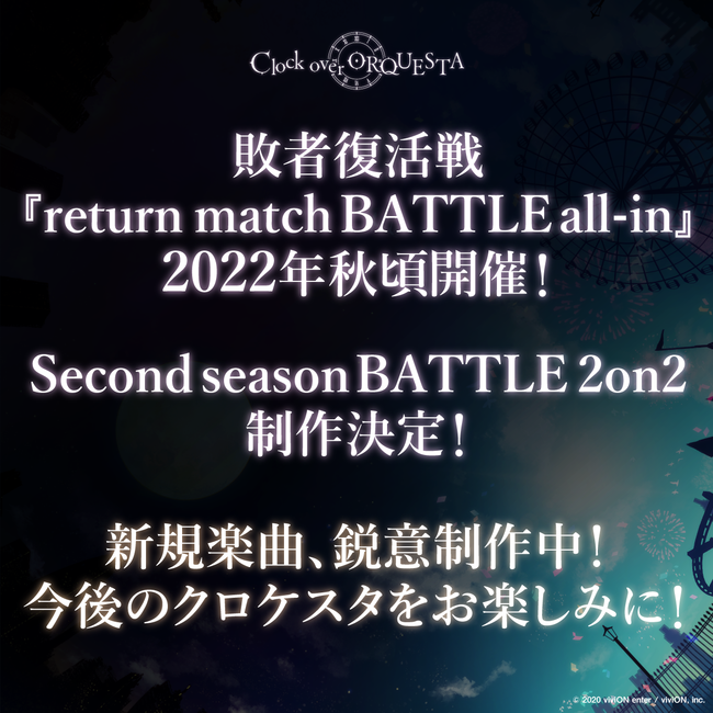 多くのユーザーさんにご声援をいただきFirst season BATTLEの先に待つ新たな戦い「Second season BATTLE」の制作が決定しました。