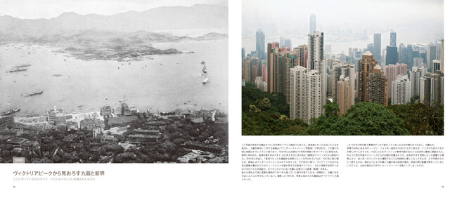 19世紀後半にイギリスに割譲され、その後アジアと欧州をつなぐ貿易・金融拠点として、特異な発展を遂げ、1997年ついに中国に主権が返還されたのちは、一国二制度の歴史を刻んできた香港。独自のコロニアルな景観を形成した香港・マカオの建築物や都市景観を写した古写真と、同じ場所で撮り下ろしたごく最近の写真を比較することで、その変遷を知ることができます。