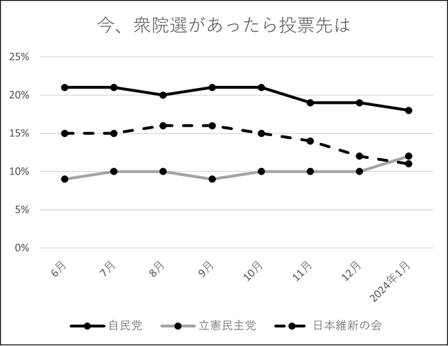■衆院選投票先は自民18%・立憲12%・維新11%