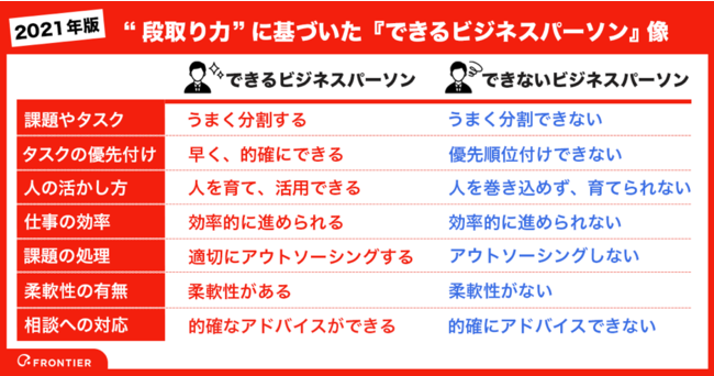 今回の調査により、『できるビジネスパーソン』には前提として、タスクの優先順位付けや、人を巻き込む力などの、“段取り力”があることが明らかとなりました。
