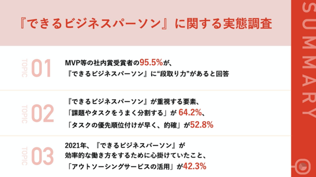 【2021年版】『できるビジネスパーソン』が心がけていたこと、「アウトソーシングサービスの活用」が42.3%で最多