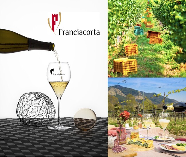 “フランチャコルタ”はイタリア北部ロンバルディア州、ミラノに程近いイゼオ湖畔の丘陵地帯・フランチャコルタで伝統的な瓶内二次発酵でつくられるスパークリングワインです。122のワイナリーが厳格で綿密な基準の下で製造し、イタリア最高峰のD.O.C.G(統制保証原産地呼称)に認定されています。イタリアファッション協会のオフィシャルパートナーであり、ミラノファッションウィークのオフィシャルワインにも選ばれております。イタリアで毎年開催されるクラシックカーレース「1000 MIGLIA」や「PORSCHE CARRERA CUP」でのオフィシャルパートナーをはじめ、イタリアの「ミシュランガイド」とのデスティネーション・パートナーやアメリカの「エミー賞」などもオフィシャルパートナーとなっております。