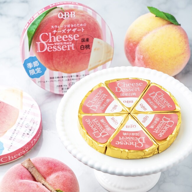 六甲バター株式会社(本社:兵庫県神戸市、代表取締役社長兼CEO:塚本 浩康)は、チーズデザートシェアNo.1※の「Q・B・Bチーズデザート6P」シリーズより、昨年発売から3ヶ月で販売累計100万個を突破した季節限定商品『国産白桃』を明日、6月1日(木)より再々発売いたします。国産白桃の果肉・果汁・ピューレを配合。華やかな香りと優しい甘みがクリームチーズとマッチし、上品な味わいのチーズデザートとなっています。食事の1品やおやつ、お酒のおつまみなど様々なシーンでお楽しみ下さい。