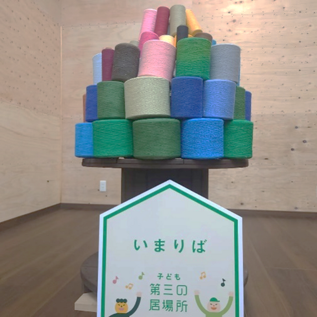 開所式では、当団体理事長の木村 福生が開所への想いを語ったのち、ご来賓の今治市の徳永 繁樹市長より祝辞を賜りました。その後、元タオル工場を改修した拠点であることから制作した、工場に残された巻き糸を使用したオブジェのお披露目をしました。様々な色やサイズの糸で多様性を表しているこのオブジェはこれで完成ではなく、拠点に来る子どもたちと少しずつつくりあげ、形を変えていく予定です。そのほか、併設しているカフェ「ブルーポケット」にて試食会も行い、「いまりば」の職員が施設概要および今後の活動について参加者の皆様へご説明しました。