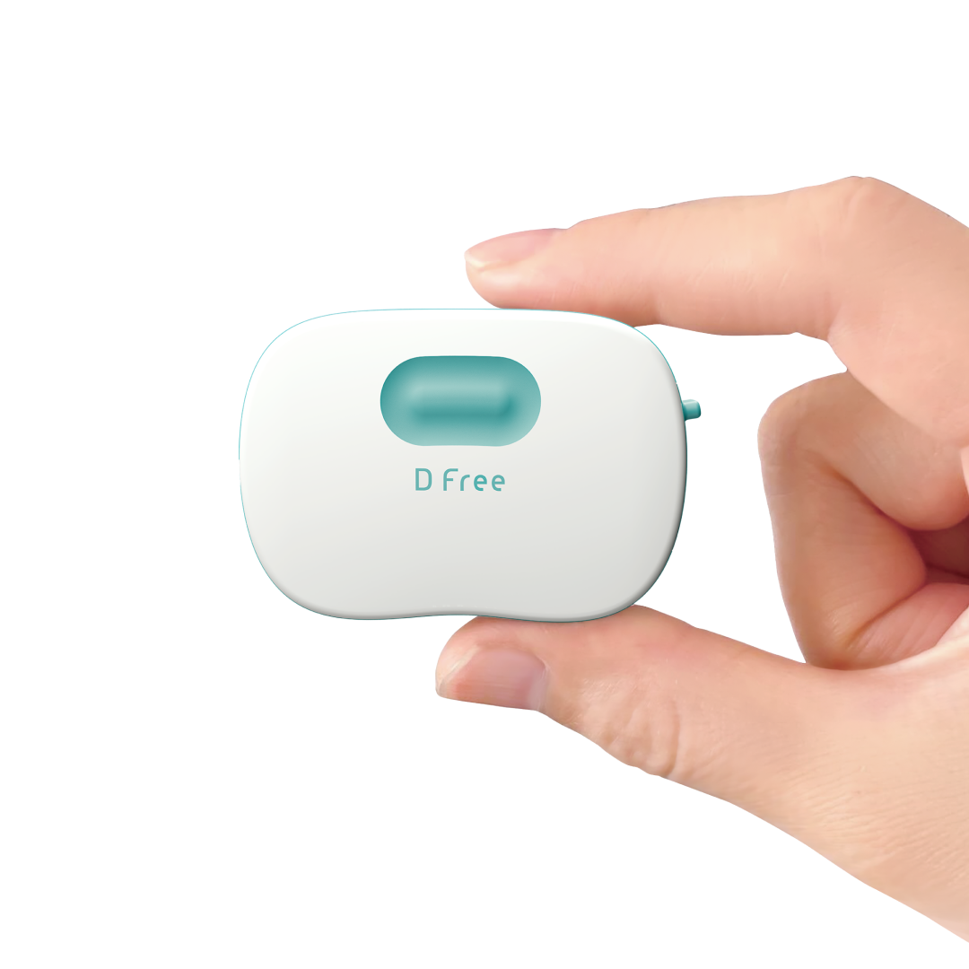 DFreeは超音波センサーを用いて膀胱の変化を捉えることで排尿のタイミングを予測するIoTウェアラブルデバイスです。膀胱内の尿のたまり具合を可視化し、収集したデータを分析することで利用者に合わせたパーソナライズケアをサポートし、利用者のQOL(生活の質)向上と介護者の負担軽減に貢献します。