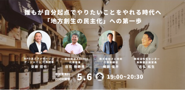 ? 「地方創生の民主化」をテーマにしたオンラインイベント5/6(金)開催